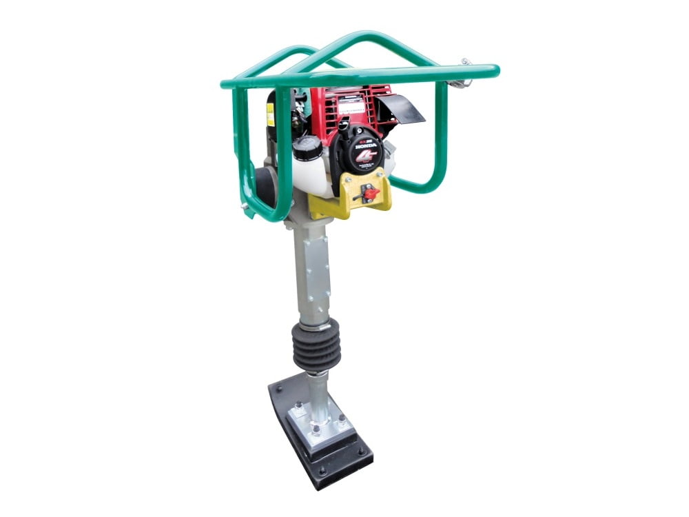 Вибротрамбовка бензиновая, вес 29 кг, размер подошвы 260х130 мм, усилие уплотнения 2 кН, глубина уплотнения 15-30 см, частота вибраций 13,3 Гц, 798 уд/мин, амплитуда хода 45 мм, 4-тактный бензиновый двигатель Honda GX35 объемом 35,8 куб.см и мощностью 1,3 л.с., топливный бак 0,63 л, расход топлива 0,71 л/ч, емкость картера 0,1 л, габариты ДхШхВ 600х350х950 мм.